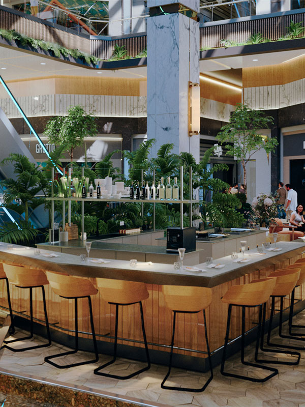 The commercial area is strategically designed to direct traffic flow efficiently, ensuring that all customers will have easy access and an immersive experience. The loading docks are fully equipped with single and double loaded corridors, escalators, and panoramic elevators.